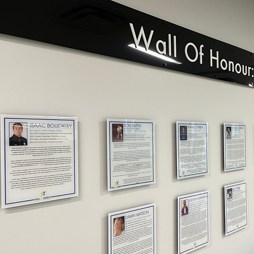 The Athletic Wall of Honour, located at the Jack Burger Sports Complex, is a community-driven initiative that celebrates the achievements of local athletes by preserving the stories and histories of sport in Port Hope.