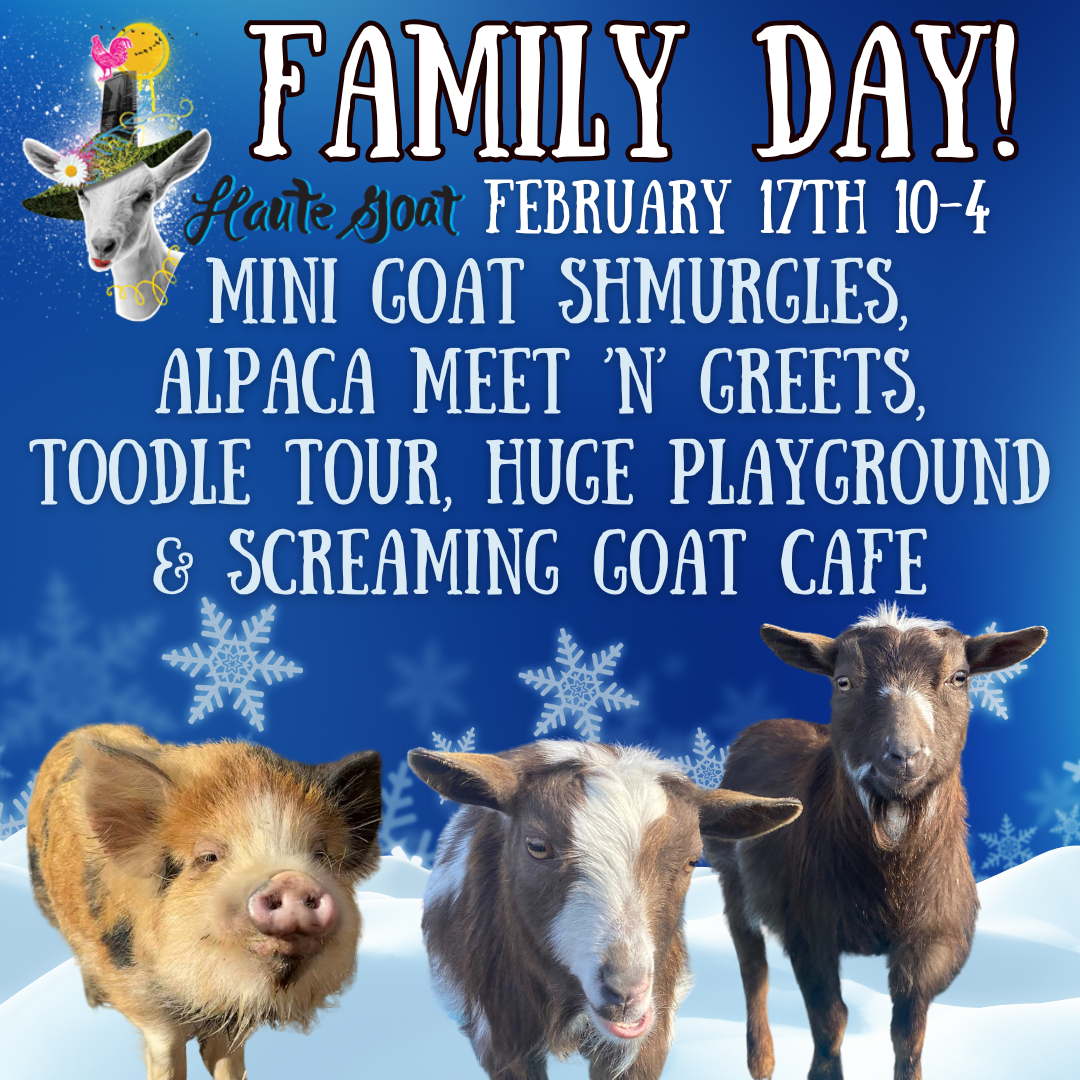 Join us this Family Day for nature, friendly farm animals, cozy café treats, and fun mini-experiences at special prices. Meet goats and alpacas, enjoy a meal, and explore our winter wonderland! There’s something for everyone to enjoy!