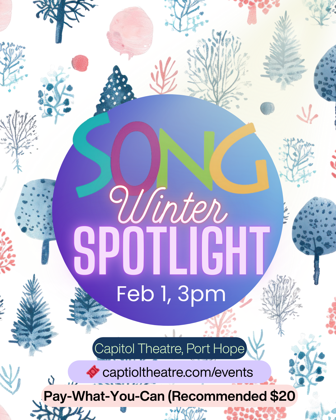 Join us for SONG's Winter Spotlight Concert, Sunday, February 1st at 3:00 PM at the Capitol Theatre in Port Hope.
