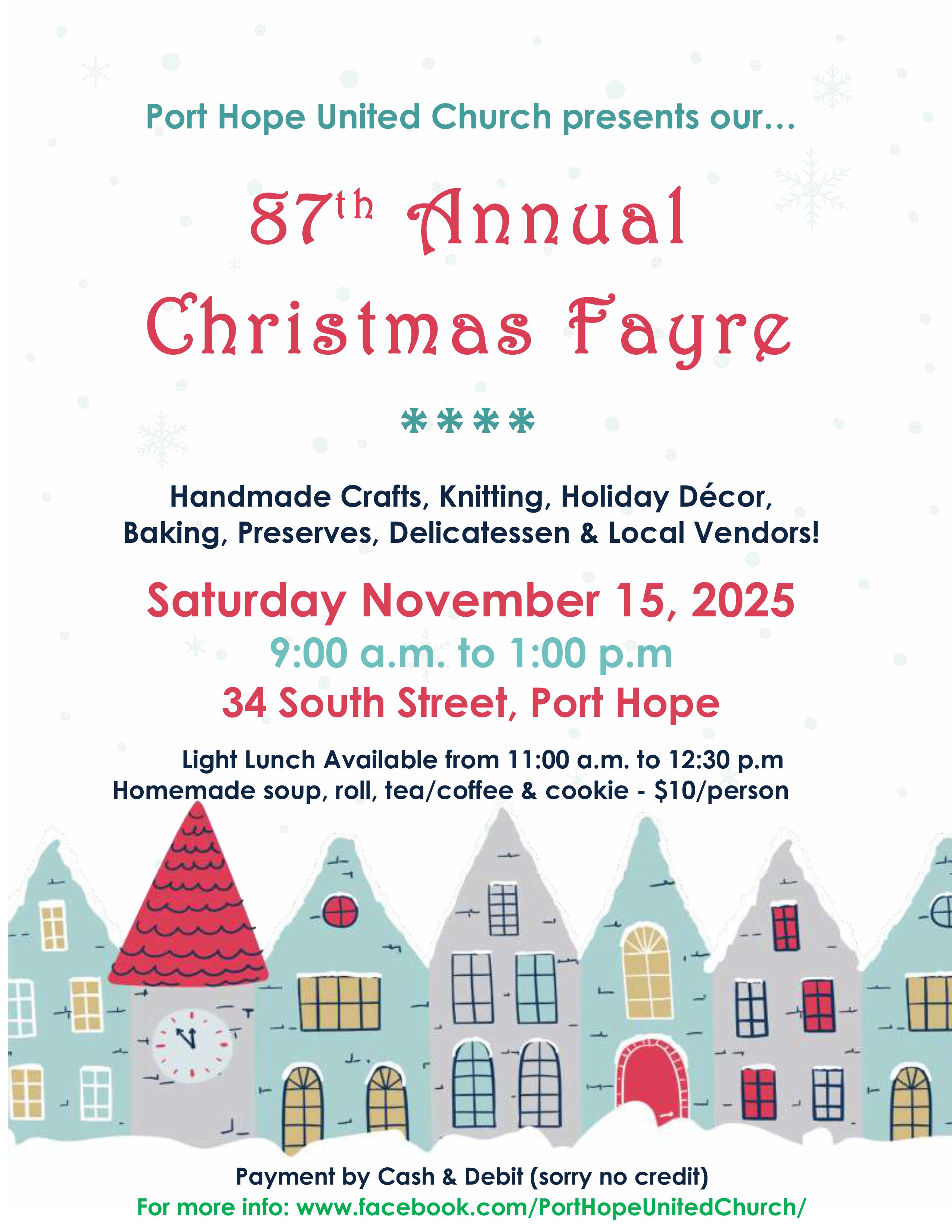 87th Annual Christmas Fayre at Port Hope United Church - This event has already occurred