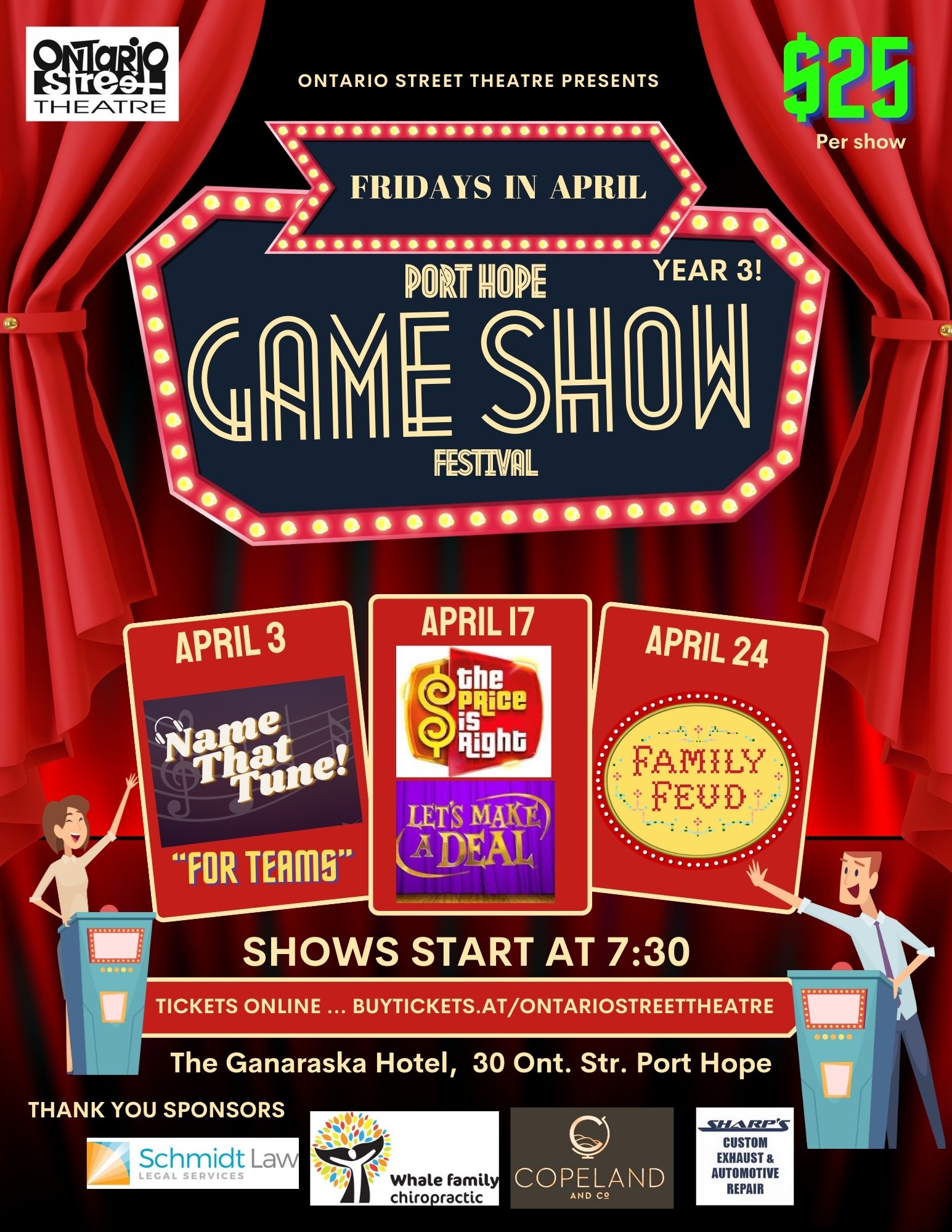 Port Hope Game Show Festival now back for Year 3!! 3 Shows. Fridays in April at The Ganny.