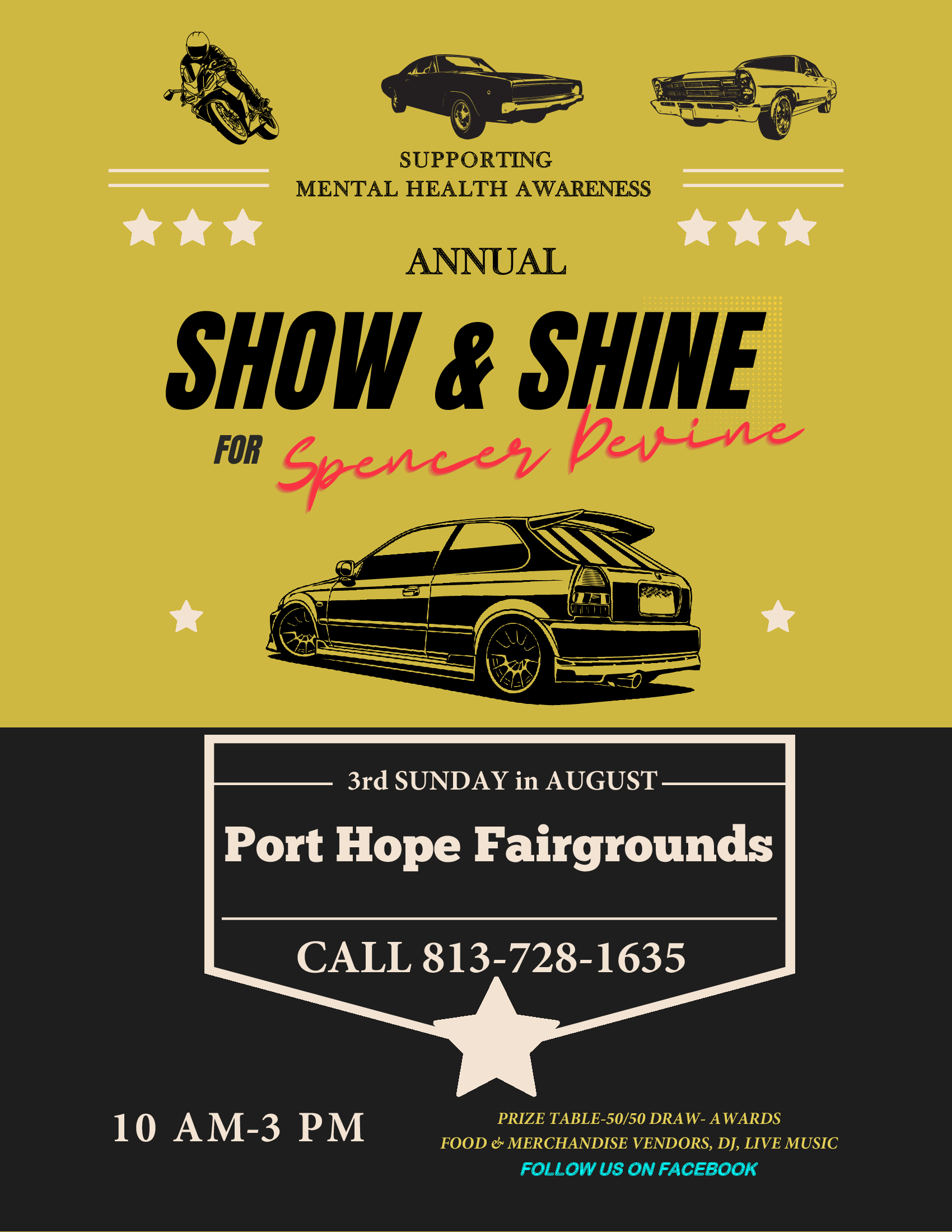 5th Annual Charity Car Show - 62 McCaul St, Port Hope Fairgrounds. Proceeds will support mental health awareness & resources in our local communities.